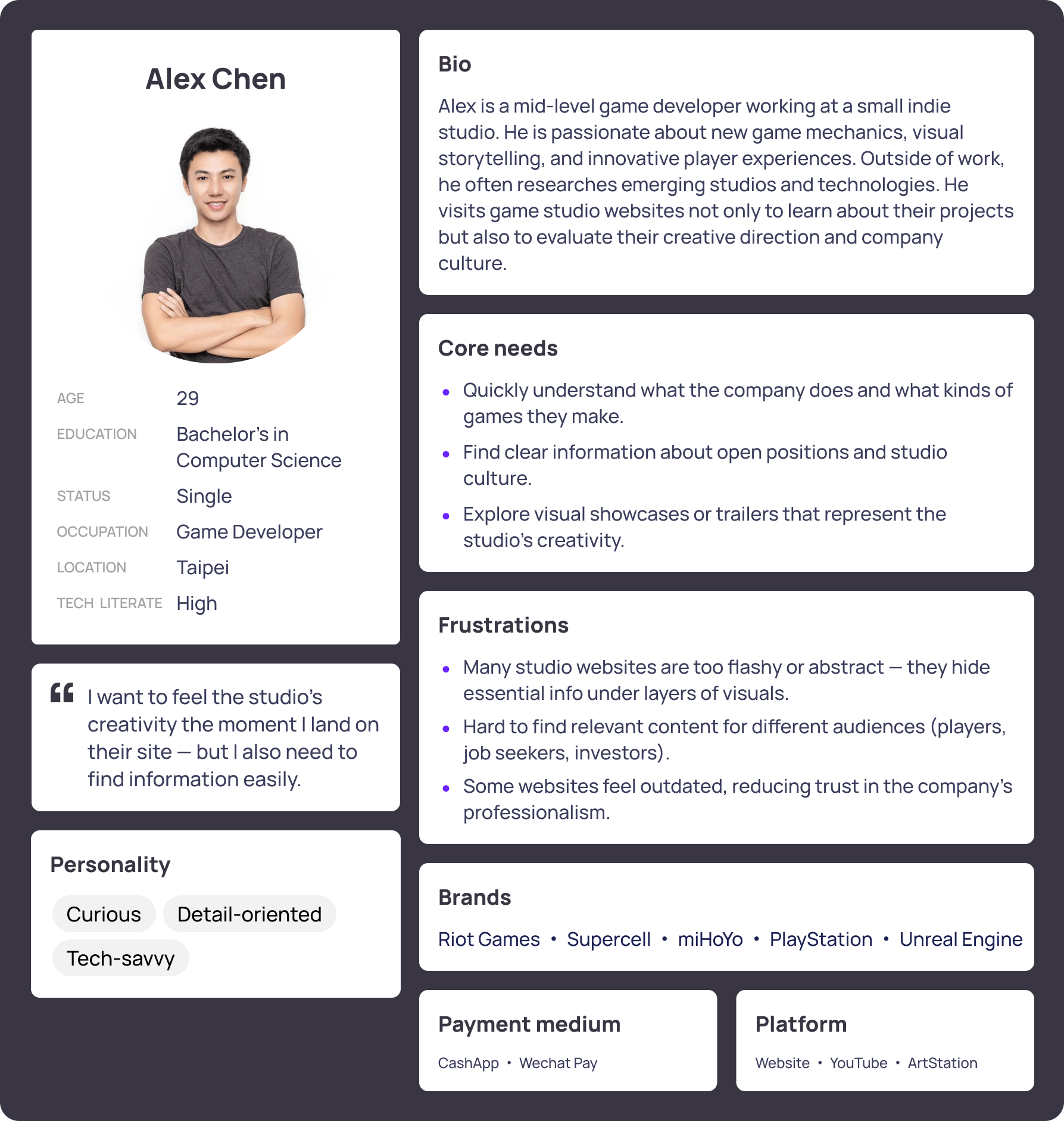 I explored different layout approaches to balance visual engagement with readability, creating a cohesive and flexible system for showcasing games and brand messaging.